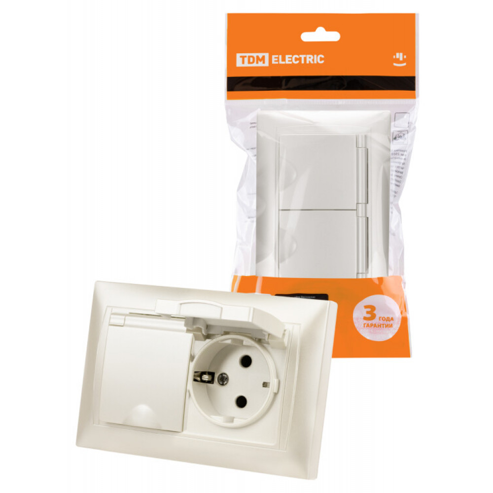 Розетка двойная 2П+З 16А 250В IP44 с защ. шт. с крышкой перламутр "Лама" SQ1815-0860, Розетка скрытого монтажа