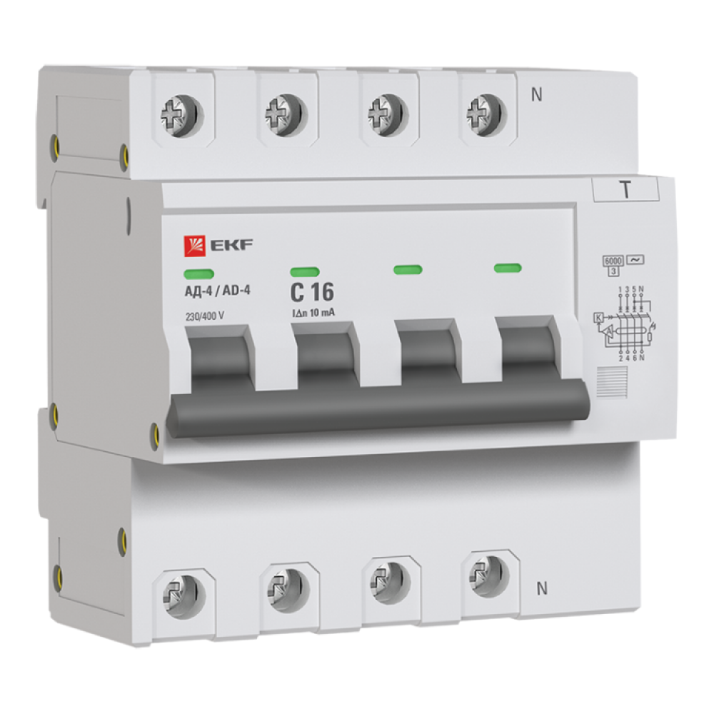 Выключатель автоматический дифференциальный (дифавтомат) АД-4 применяется в электрических цепях переменного тока номинального напряжения 400 В и частотой 50 Гц. Предназначен для защиты людей от поражения электрическим током при случайном прикосновении к открытым проводящим частям электроустановки. Защищает электроустановки (ЭО) при повреждении изоляции проводников и неисправностях ЭО, предотвращает возгорания и пожары, возникающие вследствие протекания токов утечки и развивающихся из них коротких замыканий, замыканий на корпус и замыканий на землю. Обеспечивает автоматическое отключение участка электрической сети при перегрузках и токах короткого замыкания.