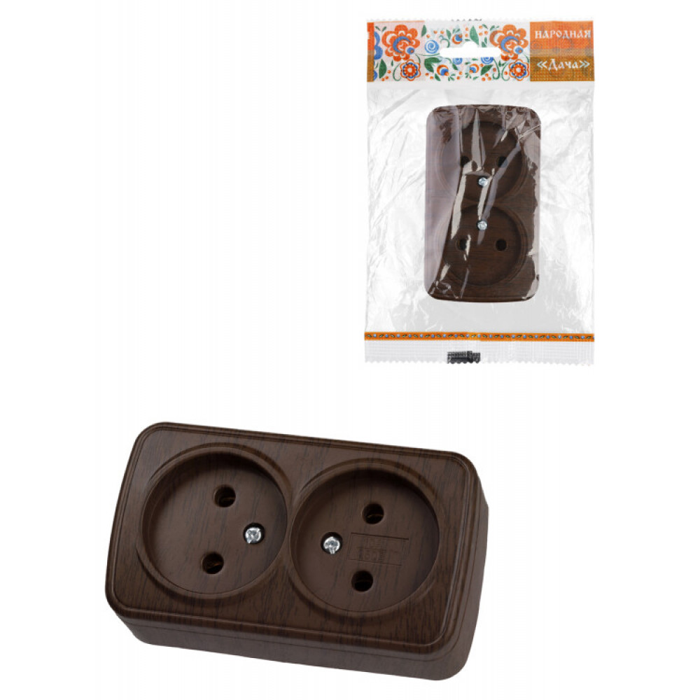 Описание Розетка двойная 2П открытой установки IP20 10А, венге "Дача" Народная SQ1824-0029