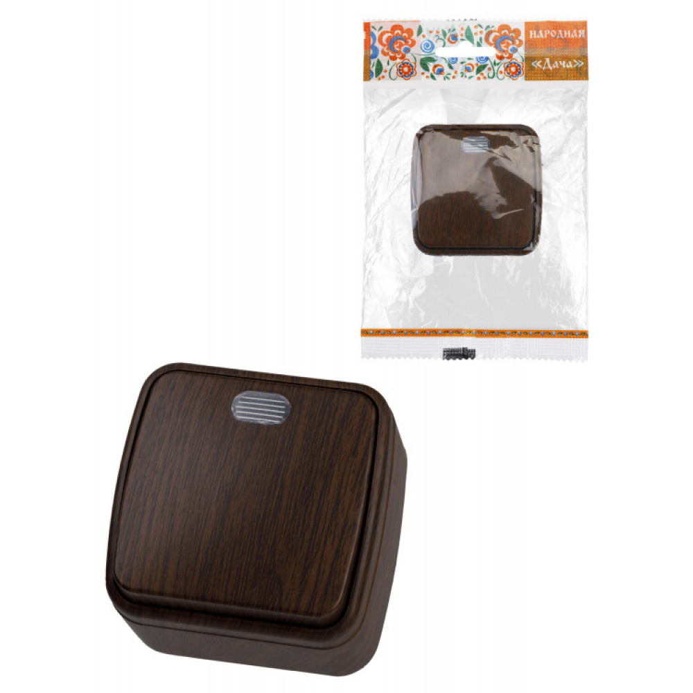 Доставка Выключатель 1-кл. открытой установки с подсветкой IP20 10А, венге "Дача" Народная SQ1824-0045