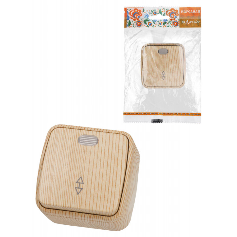 Переключатель на 2 направления 1-кл. открытой установки с подсветкой IP20 10А, сосна "Дача" Народная SQ1824-0056, Выключатель и переключатель открытого монтажа