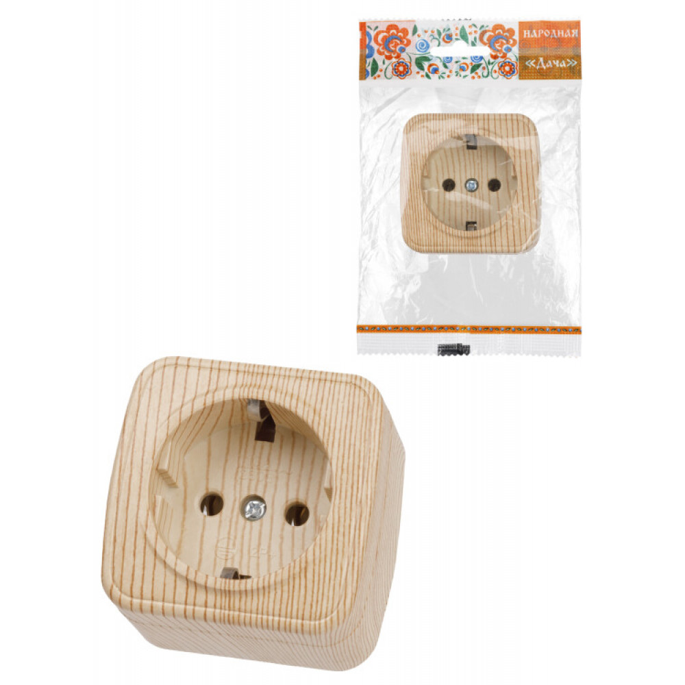 Описание Розетка 2П+З открытой установки IP20 16А, сосна "Дача" Народная SQ1824-0038