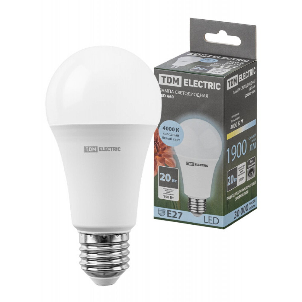 Описание Лампа светодиодная А60 20 Вт, 230 В, 4000 К, E27 SQ0340-0494