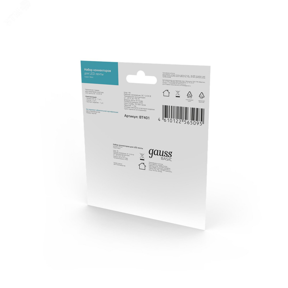 Описание Набор коннекторов Gauss Basic : 2 клипсы, провод 30мм, 8-10 мм, IP20