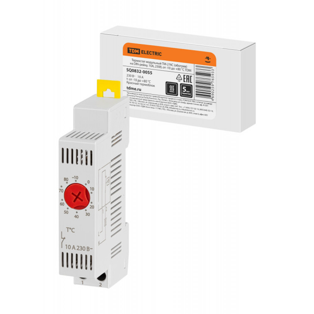 Описание Термостат модульный ТМ-2 NC (обогрев) на DIN-рейку, 10 А, 230 В, от -10 до +80 °C SQ0832-0055