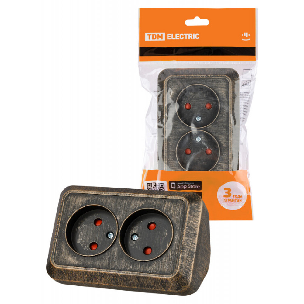 Доставка Розетка угловая двойная 2П открытой установки с з/ш IP20 250В 10А бронза "Ладога" SQ1801-0289