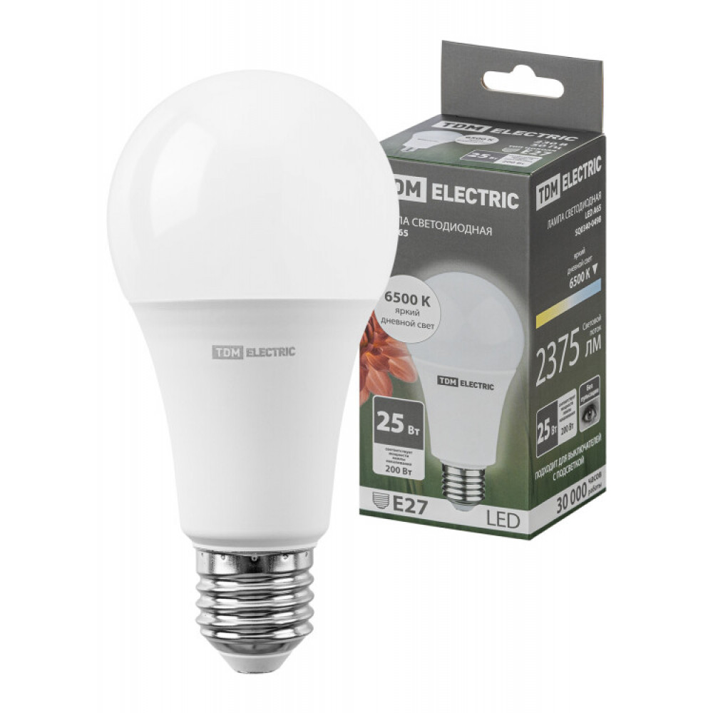 Лампа светодиодная А65 25 Вт, 230 В, 6500 К, E27 SQ0340-0498, Лампа светодиодная