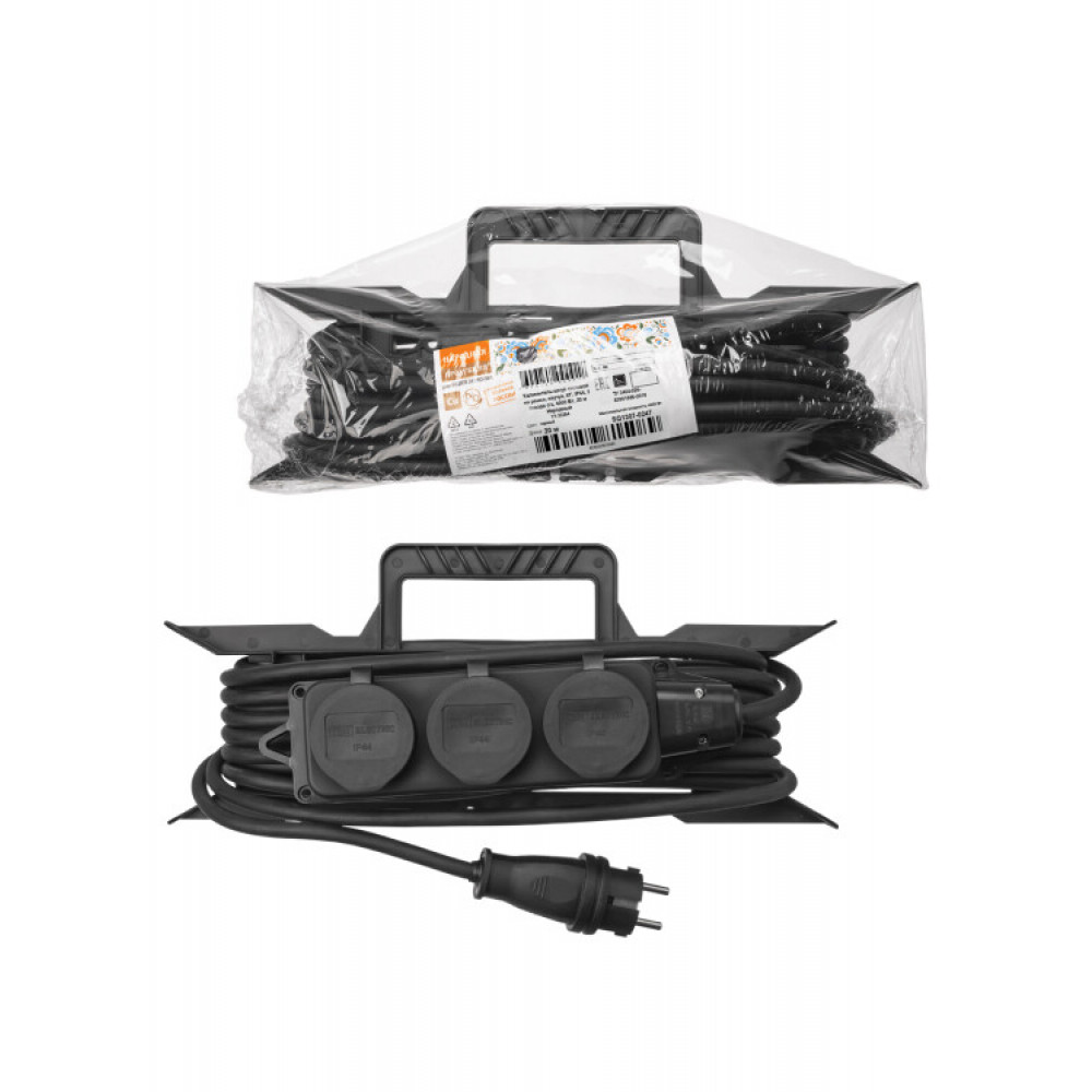 Удлинитель-шнур силовой на рамке, каучук, КГ, IP44, 3 гнезда с/з, 4000 Вт, 20 м Народный SQ1307-0247, Удлинитель, сетевой фильтр