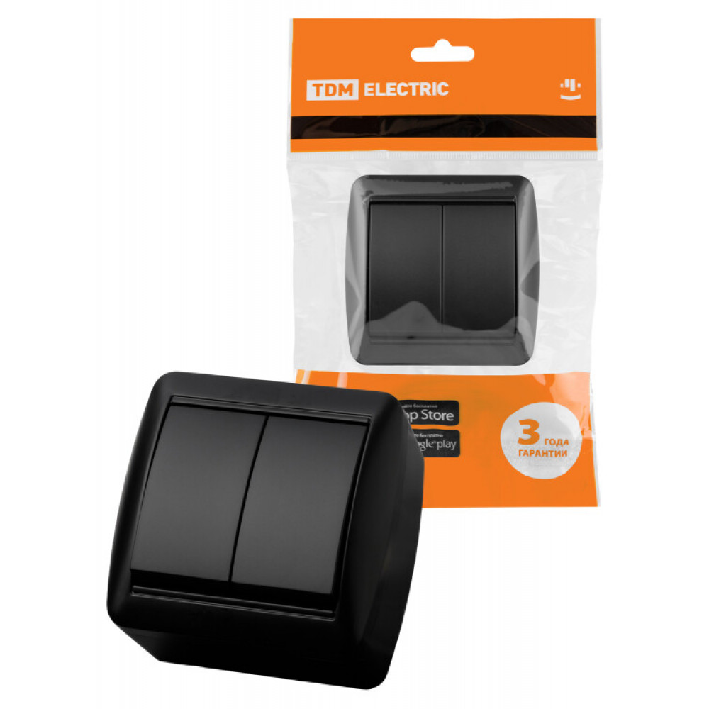 Описание Выключатель 2-кл. открытой установки IP44 10А графит "Селигер" SQ1818-0302
