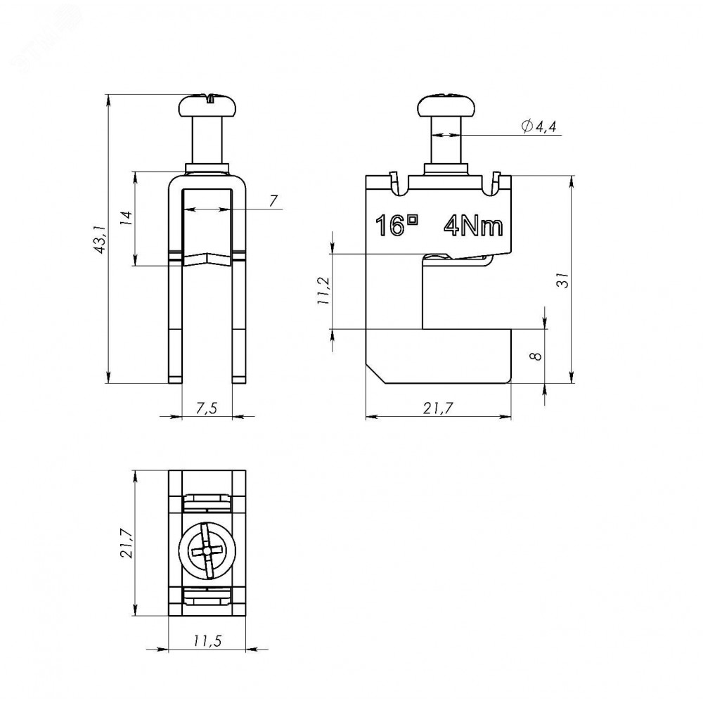 Описание Шинная клемма для кабеля, сечение шины 10 мм, кабель 1,5-16 мм R5BC1016