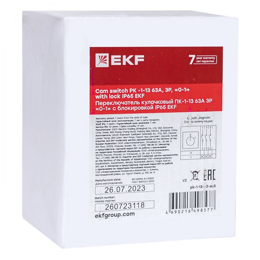 Описание Переключатель кулачковый ПК-1-13 63А 3P "0-1" с блокировкой IP65 PROxima pk-1-13-63-a65