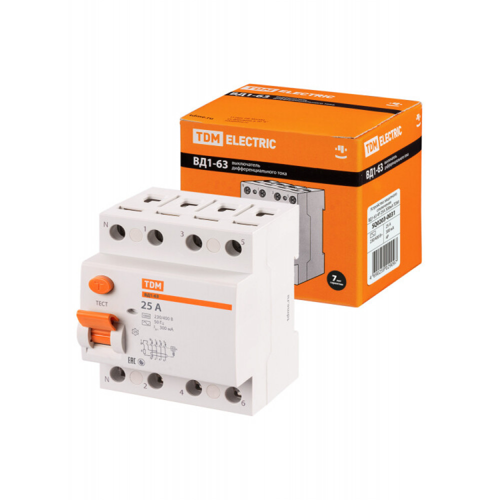 УЗО ВД1-63 4Р 25А 300мА SQ0203-0031, Дифференциальная защита: УЗО, дифф блок