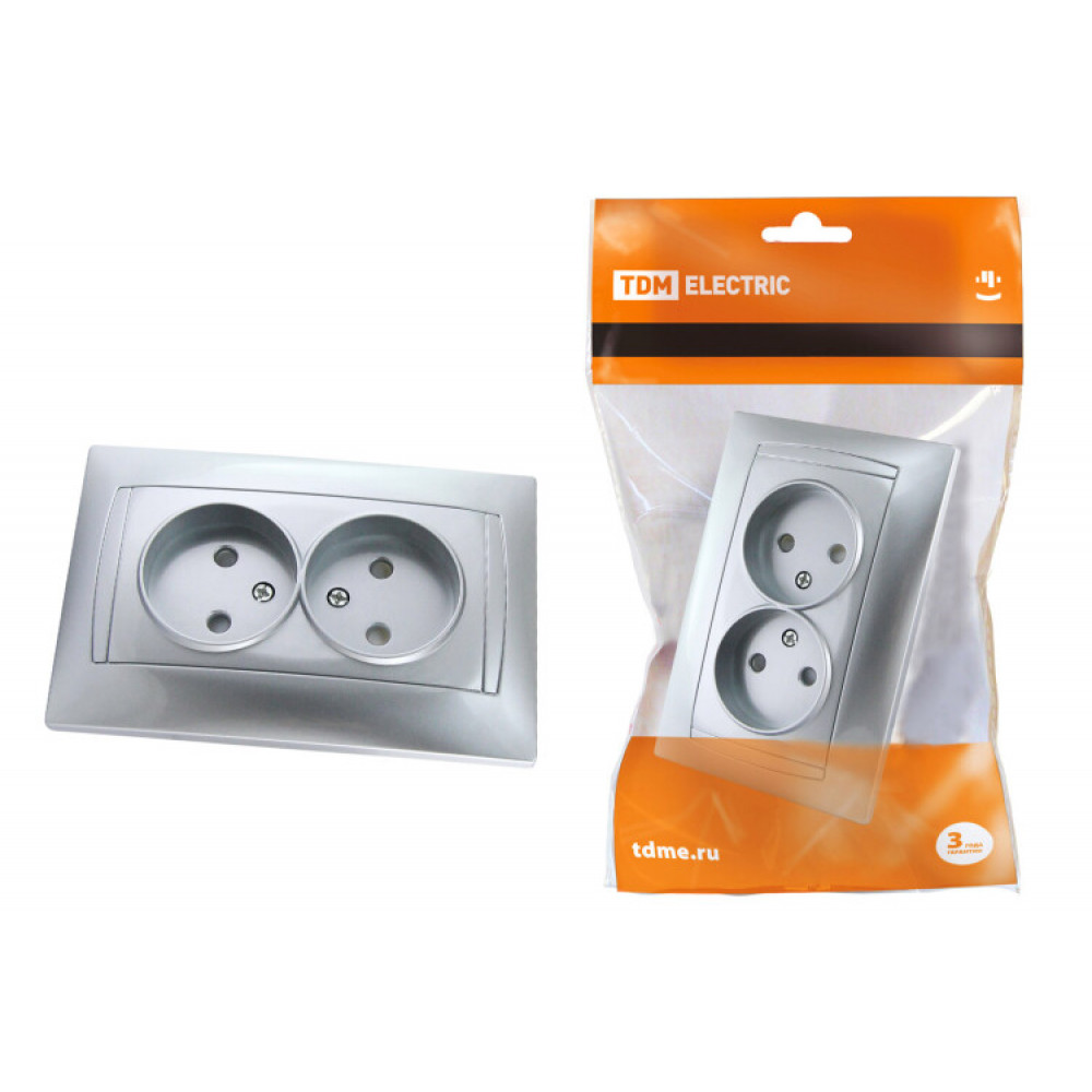 Описание Розетка двойная 2П 10А 250В с защ. шт. серебр. металлик "Лама" SQ1815-0212