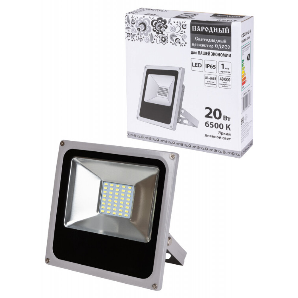 Доставка Прожектор светодиодный СДО20-2-Н 20 Вт, 6500 К, серый SQ0336-0206