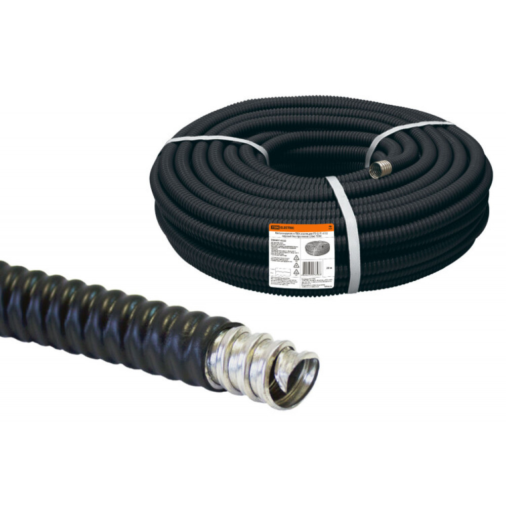 Металлорукав в ПВХ-изоляции РЗ-Ц-П d 22 черный без протяжки (20м) SQ0407-0222, Труба и короб для прокладки кабеля