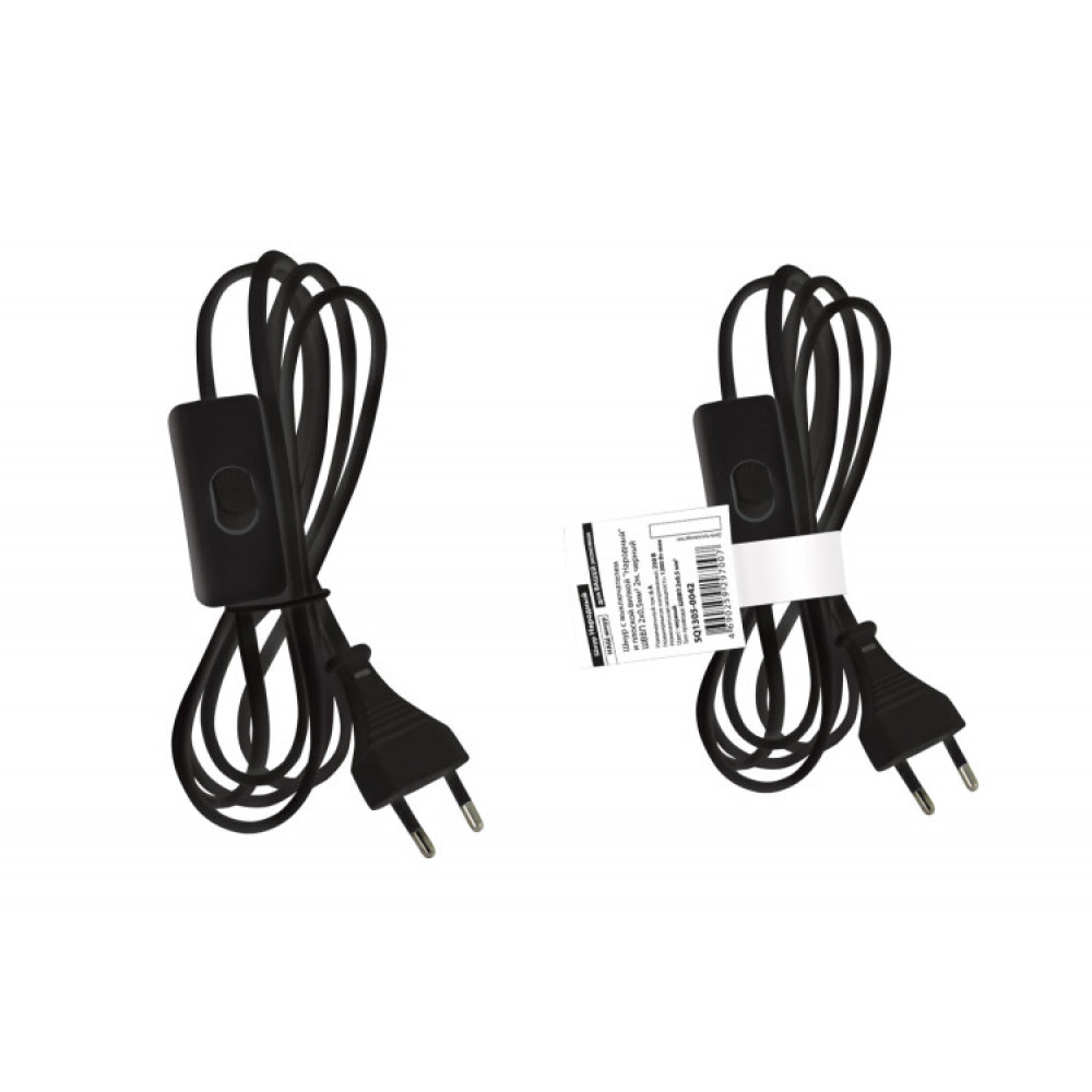 Описание Шнур с выключателем и плоской вилкой "Народный" ШВВП 2х0,5мм2 2м. черный SQ1305-0042