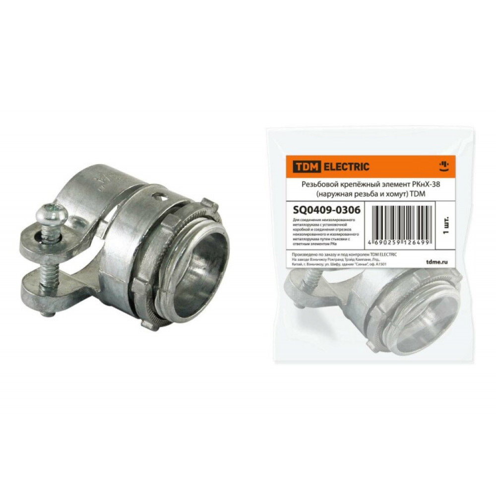Резьбовой крепёжный элемент РКнХ-38 (наружная резьба и хомут) SQ0409-0306, Труба и короб для прокладки кабеля