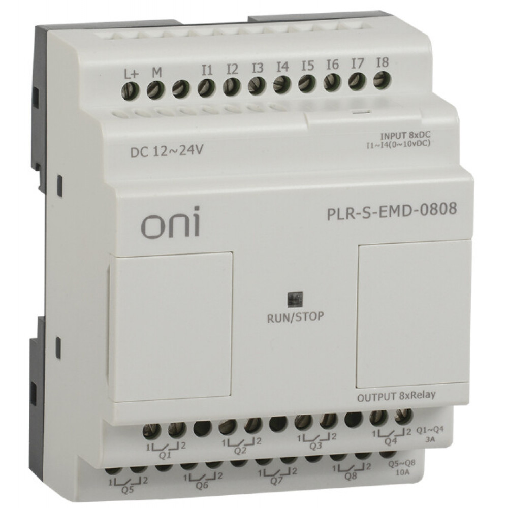 Модуль расширения 8 каналами дискретного ввода (4 могут использоваться как каналы аналогового ввода 0..10 В DC), 8 каналами релейного вывода (до 10А на канал). Предназначен для увеличения используемых каналов дискретного и аналогового ввода/вывода программируемого логического реле ONI PLR-S. Напряжение питания 12-24 В DC.