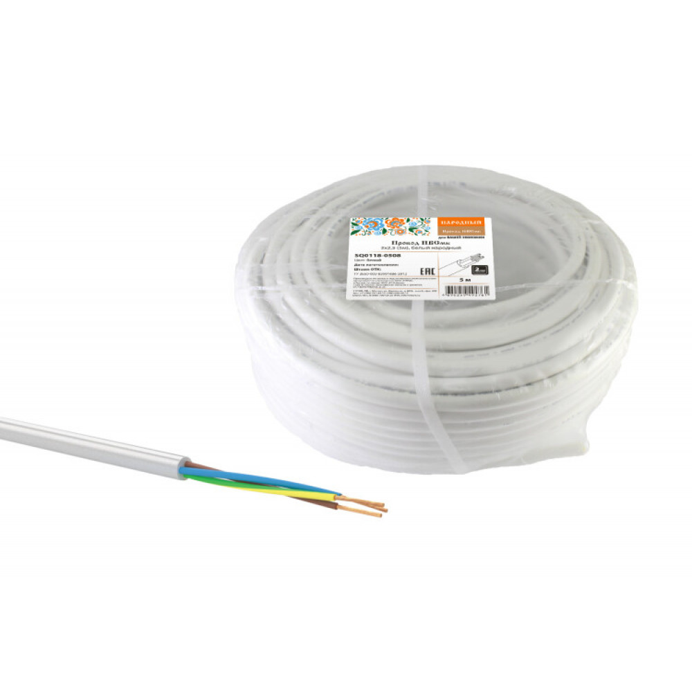 Описание Провод ПВСмб 3х2,5 (5м), белый Народный SQ0118-0508