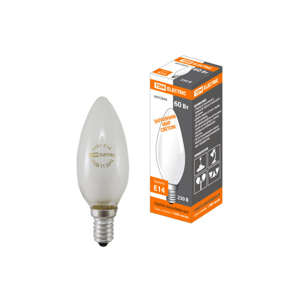 Лампа накаливания "Свеча матовая" 60 Вт-230 В-Е14 SQ0332-0019, Лампа накаливания