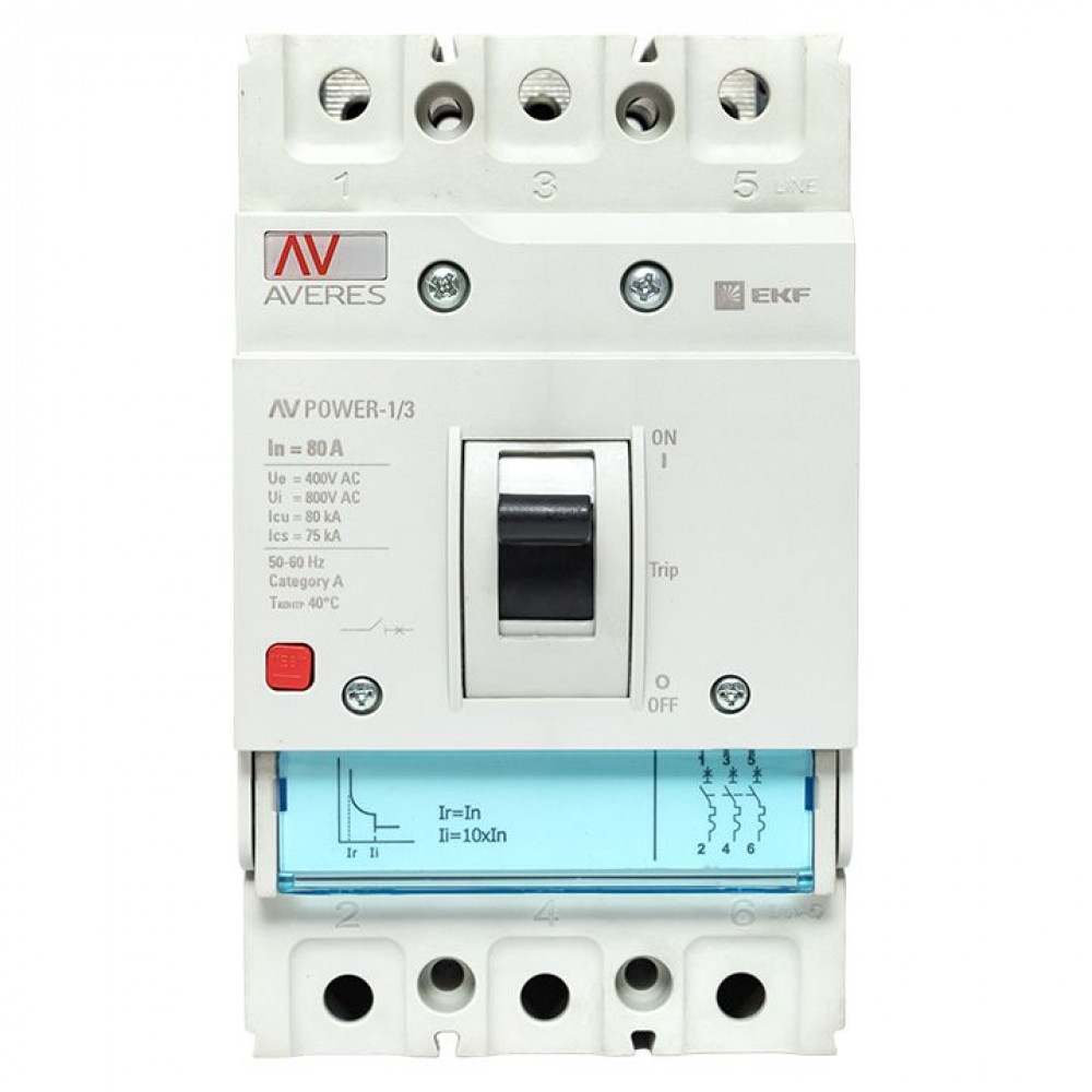 Автоматический выключатель AV POWER-1/3 80А 80kA TR AVERES mccb-13-80H-TR-av, Выключатель автоматический силовой