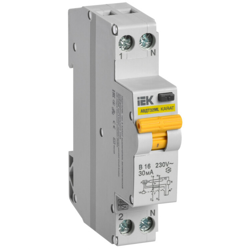 Автоматический выключатель диф. тока АВДТ32ML тип A В16 30мА KARAT MVD12-1-016-B-030-A, Дифференциальная защита: УЗО, дифф блок