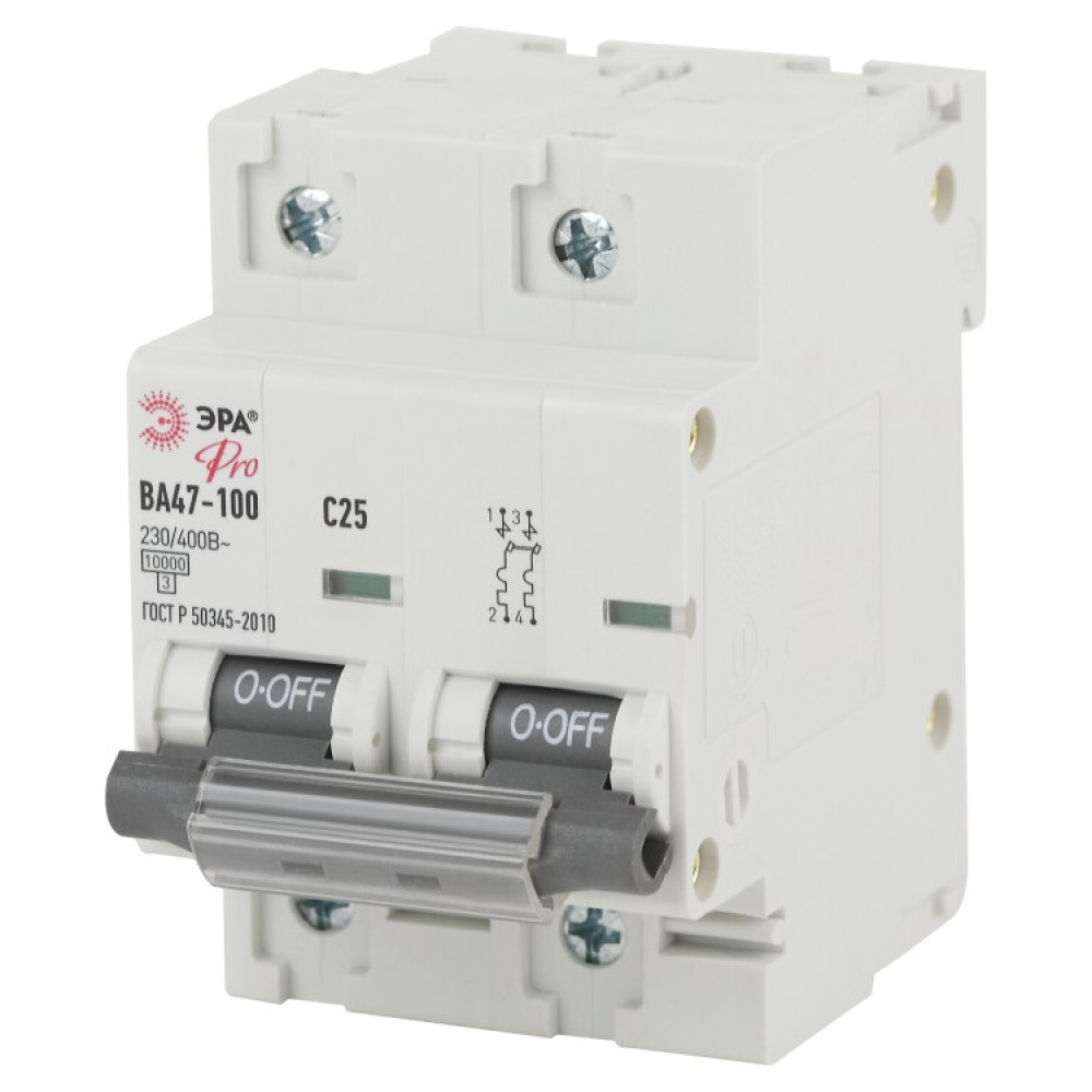 Автоматический выключатель PRO NO-902-273 ВА47-100 2Р 25А кривая С 10 кА Б0048863, Выключатель автоматический модульный