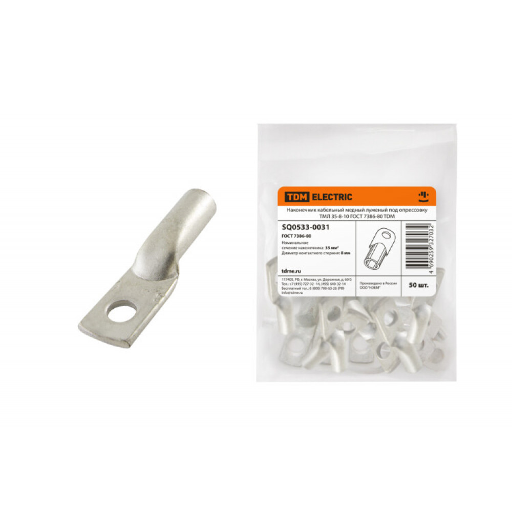 Описание Наконечник медный луженый ТМЛ 35-8-10 ГОСТ 7386-80 SQ0533-0031