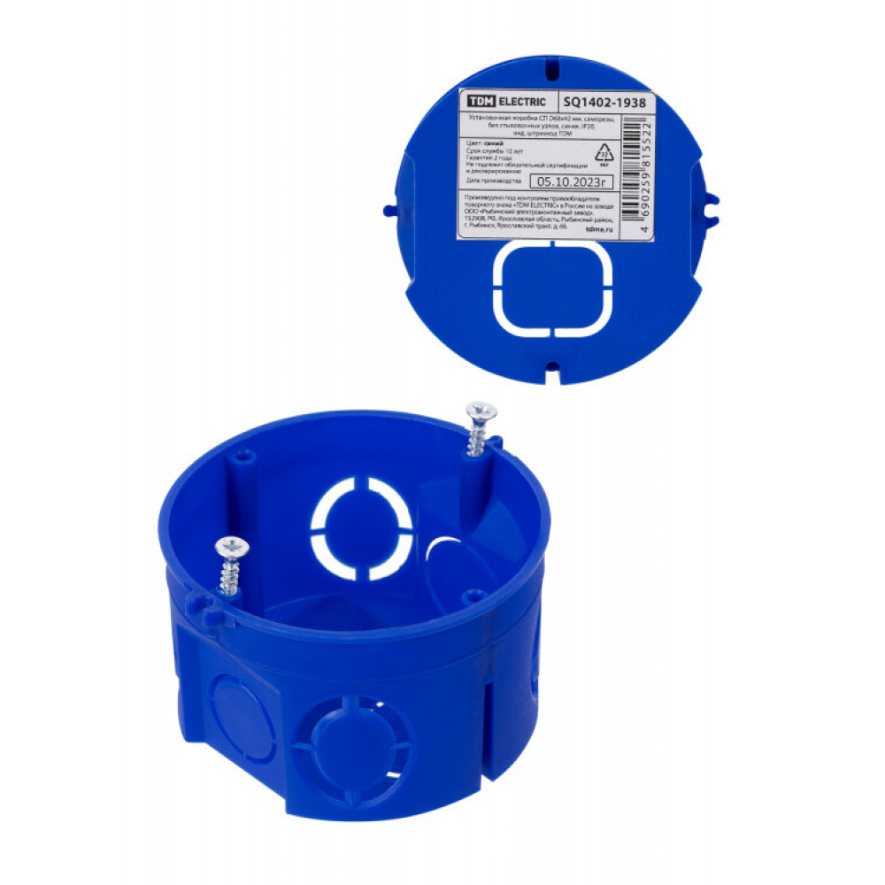 Установочная коробка СП D68х42 мм, саморезы, без стыковочных узлов, синяя, IP20, инд. штрихкод SQ1402-1938, Коробка распределительная