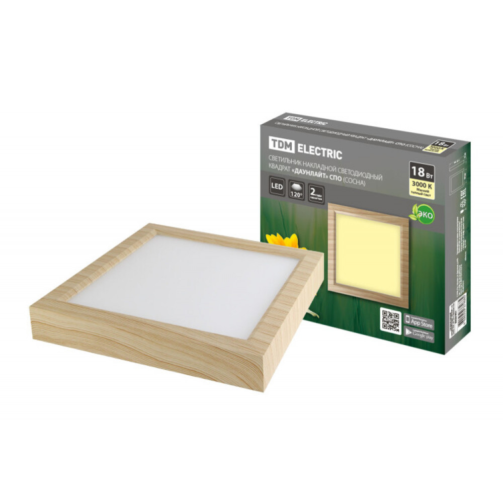 Описание Светильник накладной светодиодный квадрат "Даунлайт" СПО (сосна) 18 Вт 225*225*32 мм 3000К SQ0329-0421