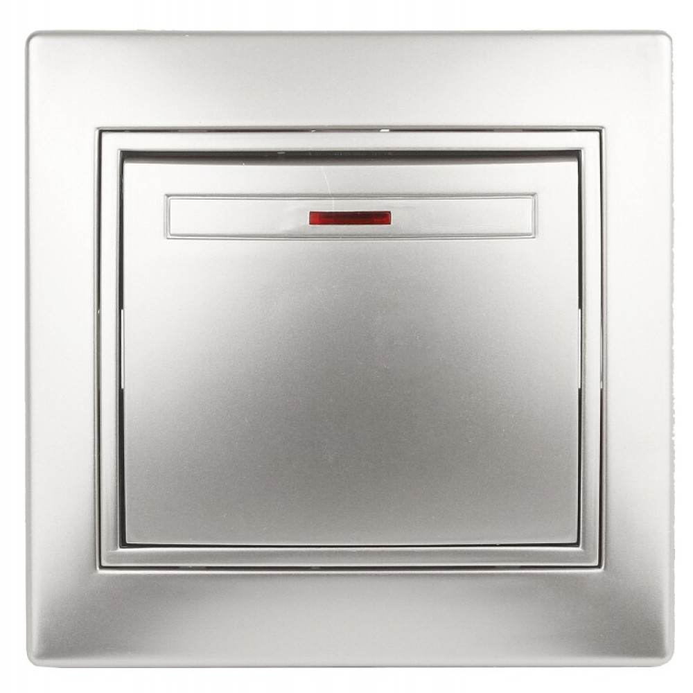 1-102-03 Выключатель с подсветкой, 10А-250В, IP20, СУ, Plano, алюминий (10/200/2400 Б0030034, Выключатель и переключатель скрытого монтажа