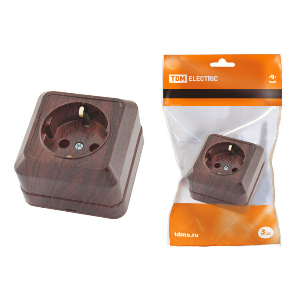 Описание Розетка 2П+З открытой установки IP20 16А, бук "Ладога" SQ1801-0034