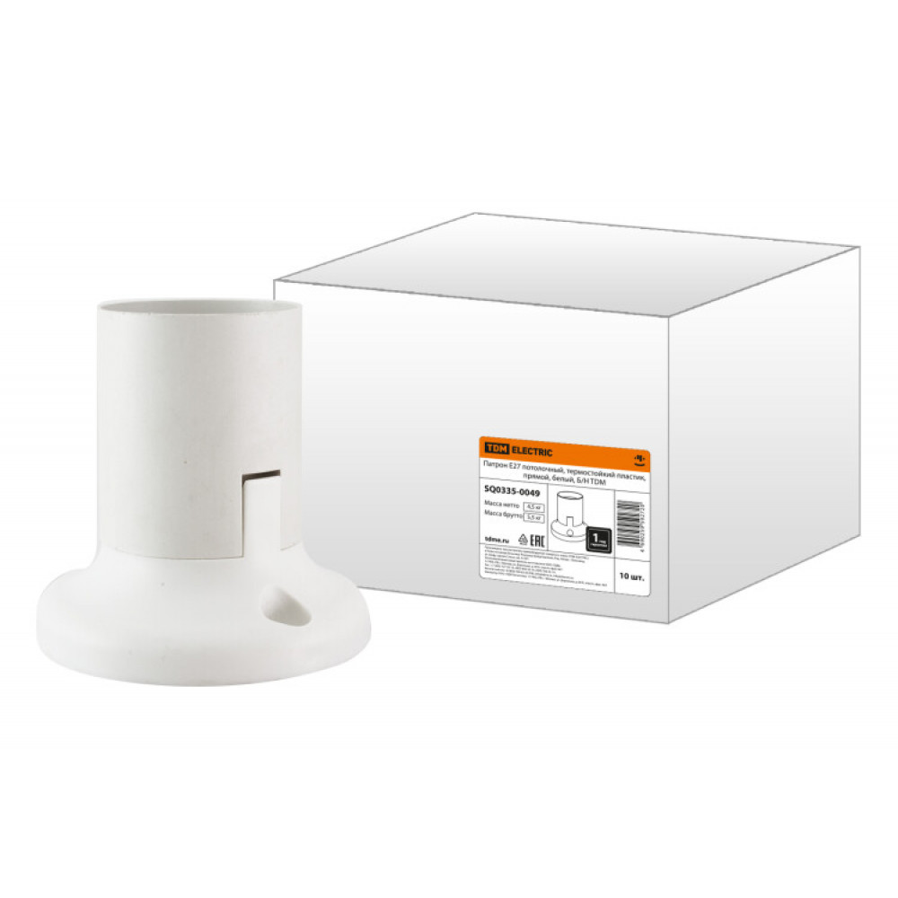 Описание Патрон Е27 потолочный, термостойкий пластик, прямой, белый, Б/Н SQ0335-0049
