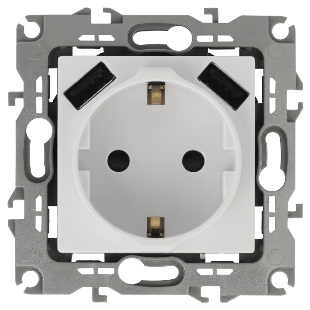 ← 14-4109-01 Розетка 2P+E 16A-250В, штор. с 2xUSB 5В-3А, Elegance, белый (10/100/2000) Б0047867