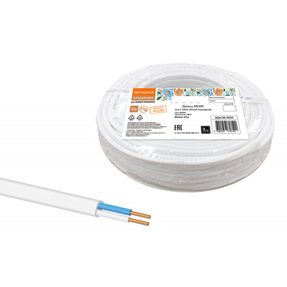 Провод ПУСП 2х2,5 (20м), белый Народный SQ0126-0020, Кабель и провод силовой для стационарной прокладки