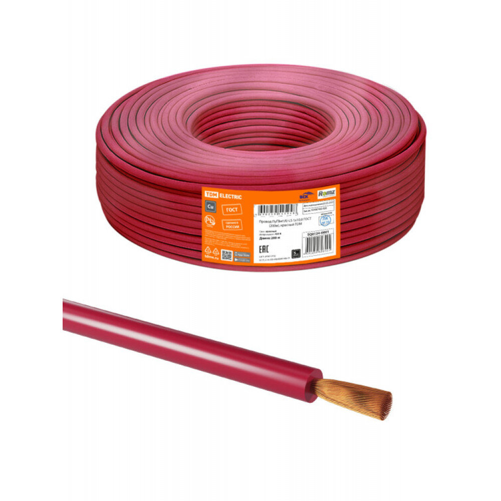 Описание Провод ПуГВнг(А)-LS 1х10,0 ГОСТ (200м), красный SQ0124-0801