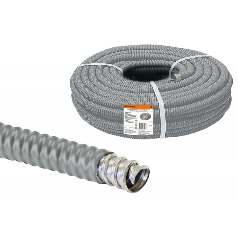 Металлорукав в ПВХ-изоляции РЗ-Ц-П 10 серый без протяжки (50м) SQ0407-0410, Труба и короб для прокладки кабеля