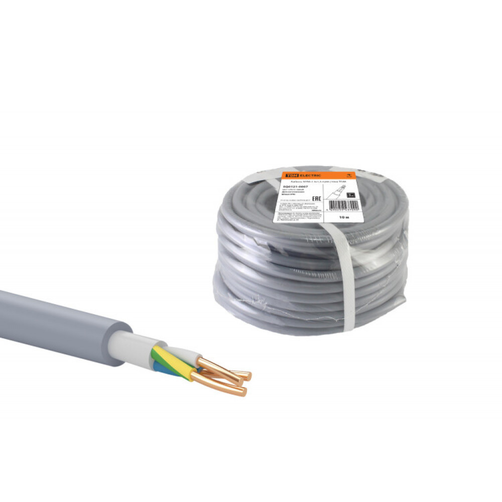 Кабель NYM-J 3х1,5-0,66 (10м) SQ0121-0007, Кабель и провод силовой для стационарной прокладки