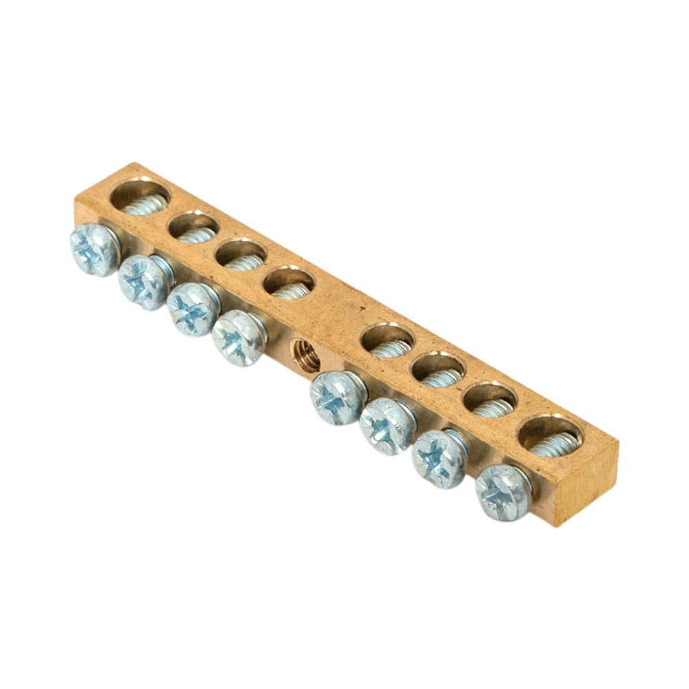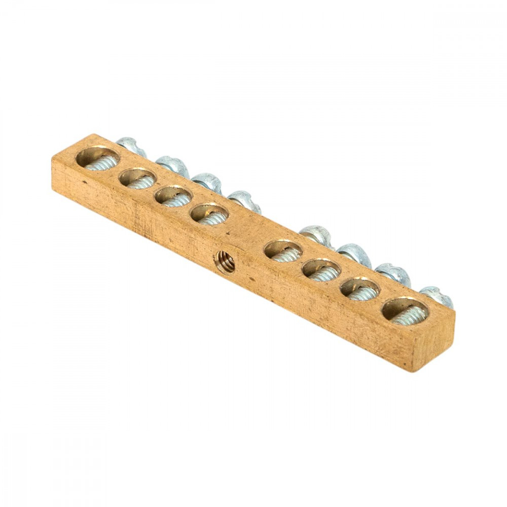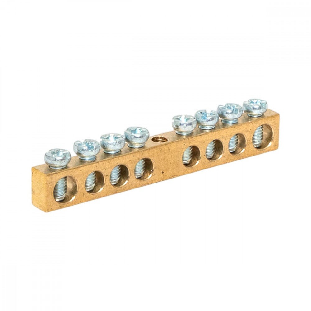 Шина PEN "ноль-земля" 6х9 8 отвер. латунь крепеж по центру sn0-63-08-r, Блок клеммный и нулевая шина