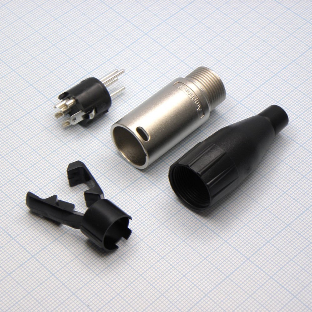 Доставка XLR 4M, на кабель, черный d=3-6.5мм , AC4M штекер Cannon 4х контактный, на кабель, черный пластиковый кожух для кабеля от3 до 6.5мм