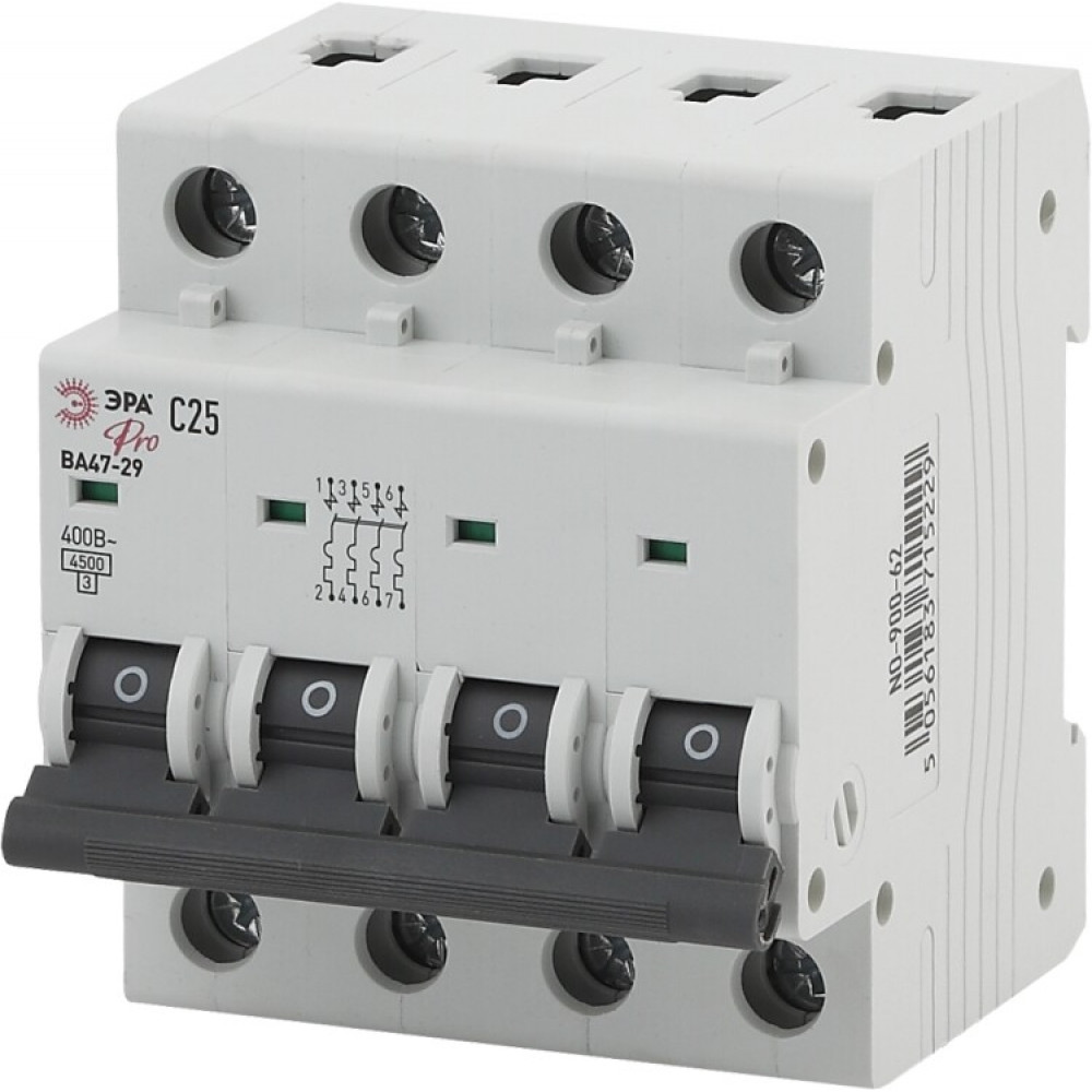 Автоматический выключатель PRO NO-900-62 ВА47-29 4P 25А кривая C 4,5кА Б0031783, Выключатель автоматический модульный