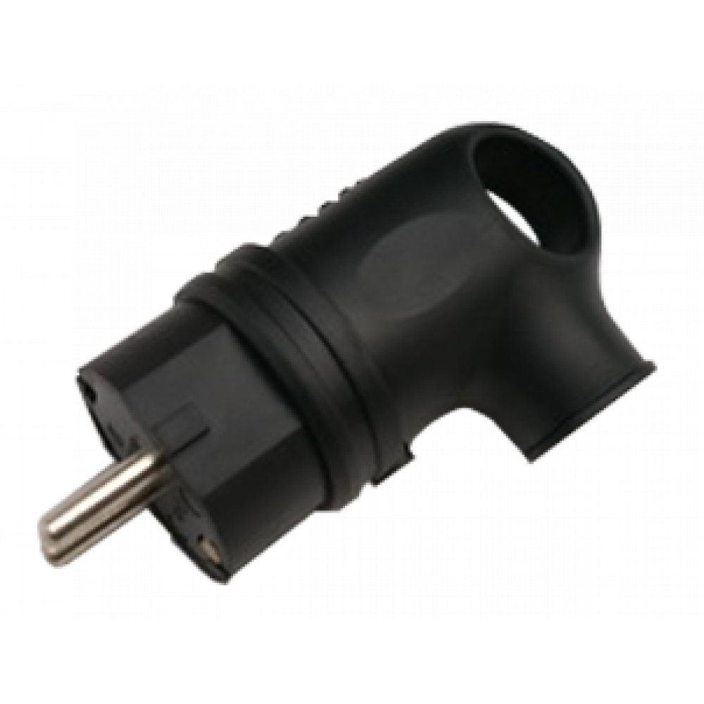 Вилка угловая с заземлением каучук 16А IP44 черная 9220 4690612010229, Вилка, колодка