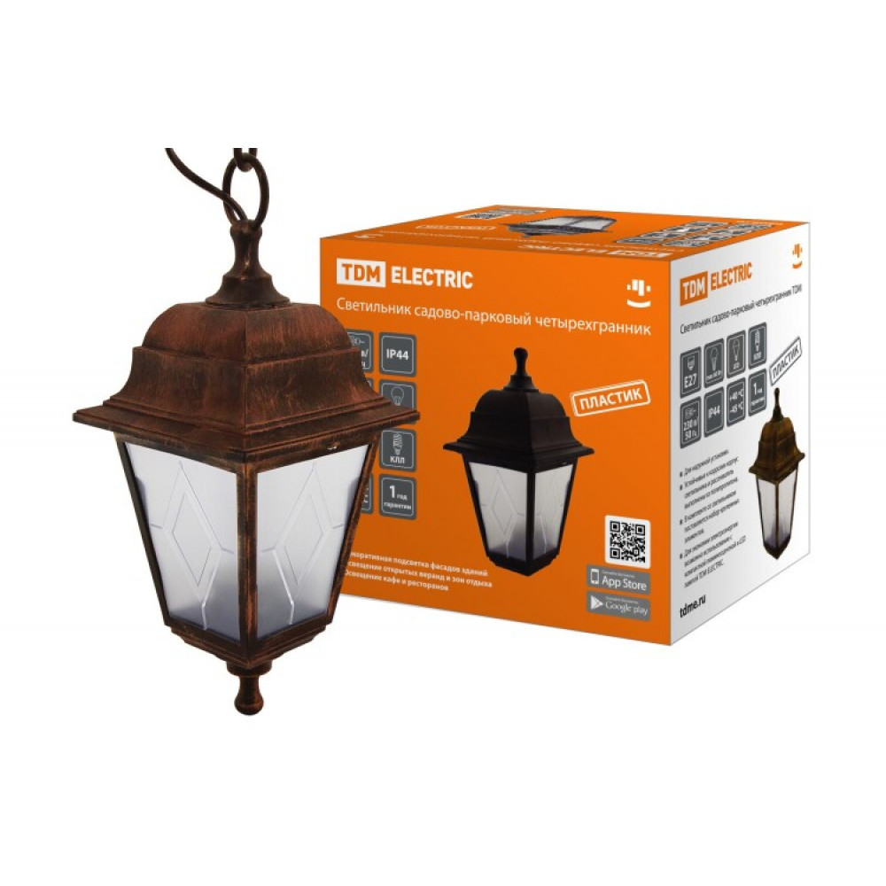 Описание Светильник садово-парковый НСУ 04-60-001 четырехгр., подвес, пластик, расс.пластик, медь SQ0330-0786