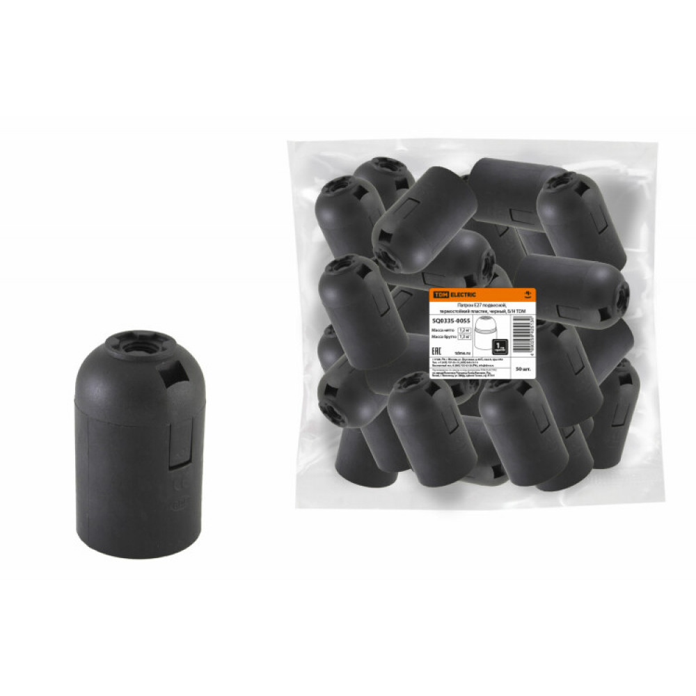 Описание Патрон Е27 подвесной, термостойкий пластик, черный, Б/Н SQ0335-0055