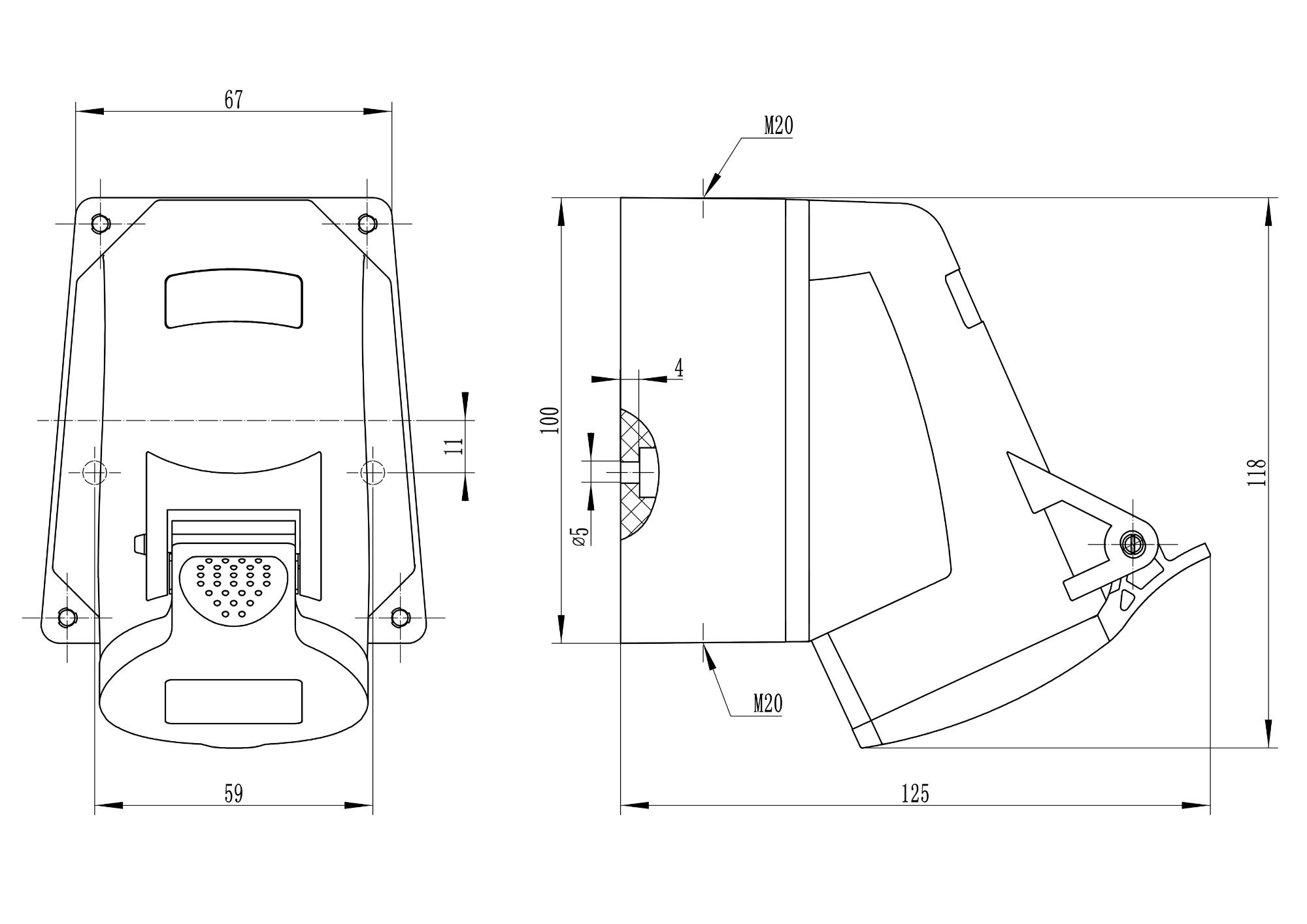 ← Розетка настенная с мех-ой блокировкой и верхним расположением разъема IP67 16А 3P+E+N DIS5051687