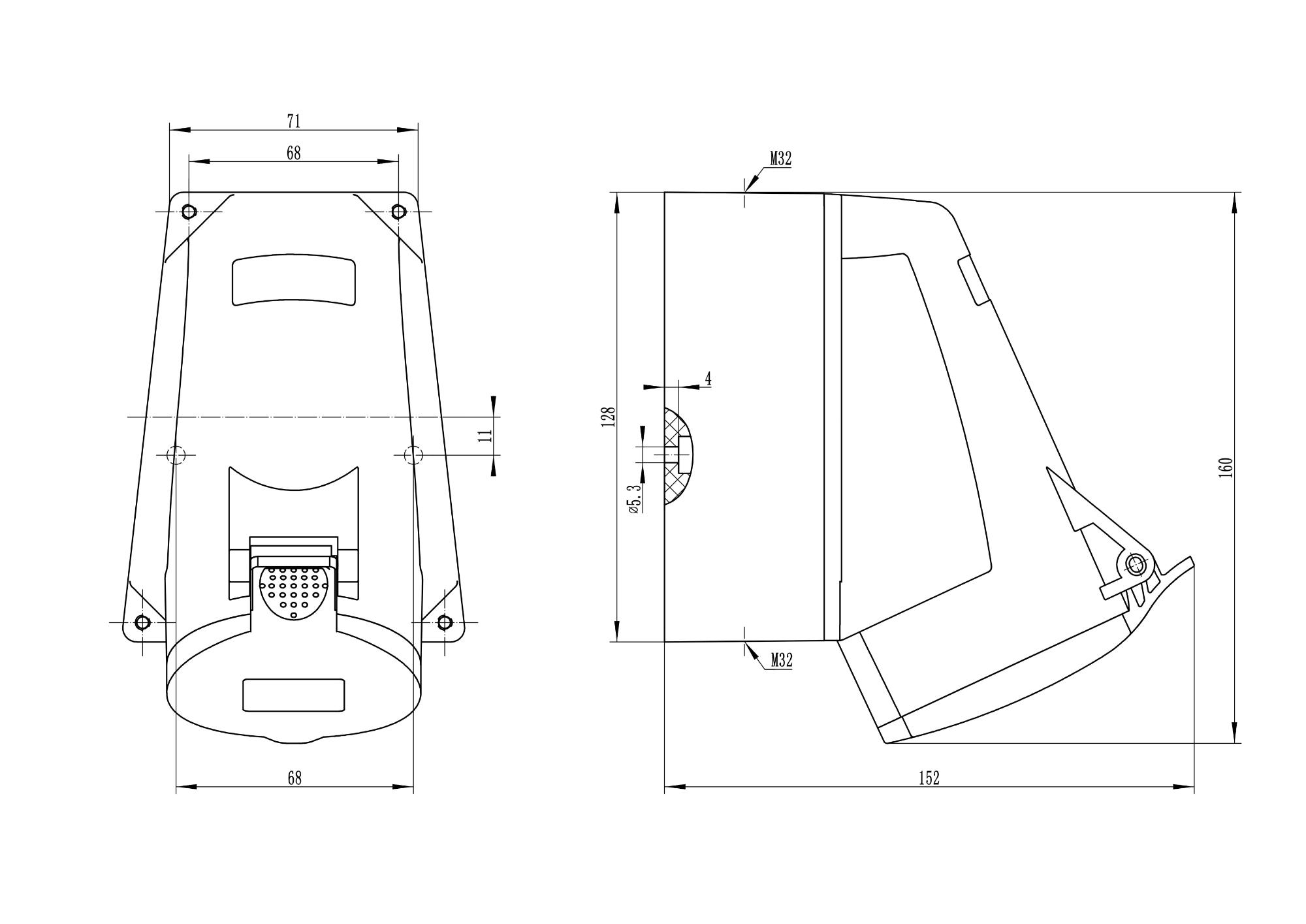 Описание Розетка настенная IP44 32A 3P+E+N 400В DIS5133257