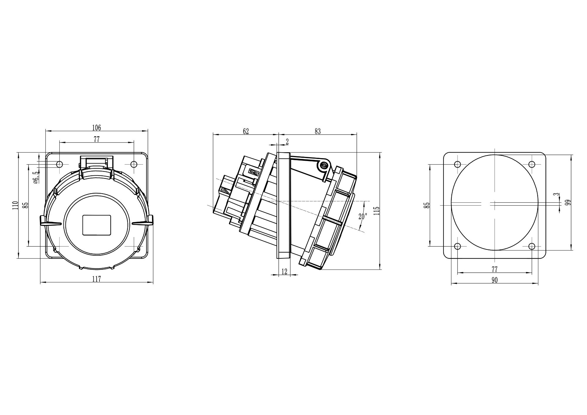 Описание Розетка панельная с наклоном IP67 63A 3P+E+N 400В DIS4156367