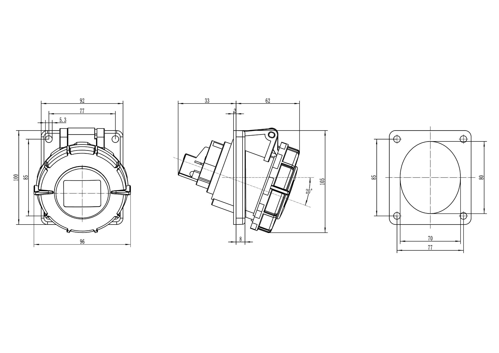 Описание Розетка панельная с наклоном IP67 16A 3P+E+N 400В DIS4181667