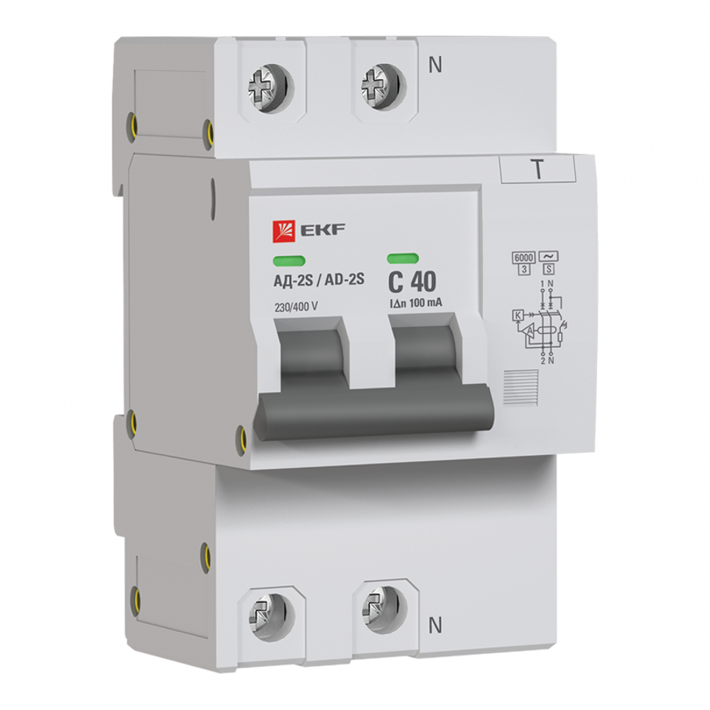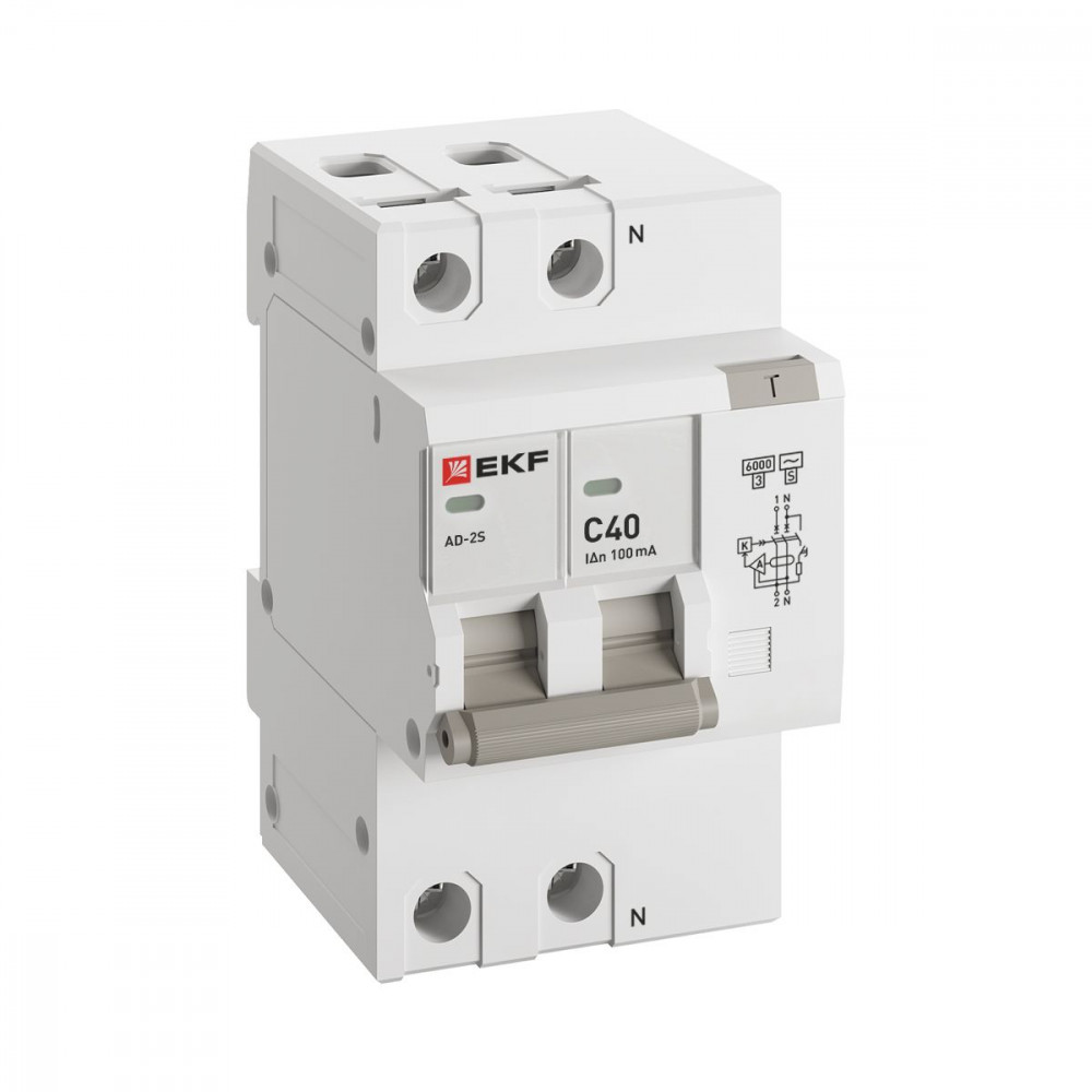 Описание Дифференциальный автомат АД-2 S 40А/100мА (хар. C, AC, электронный) 6кА PROxima DA2-6-40-100S-pro