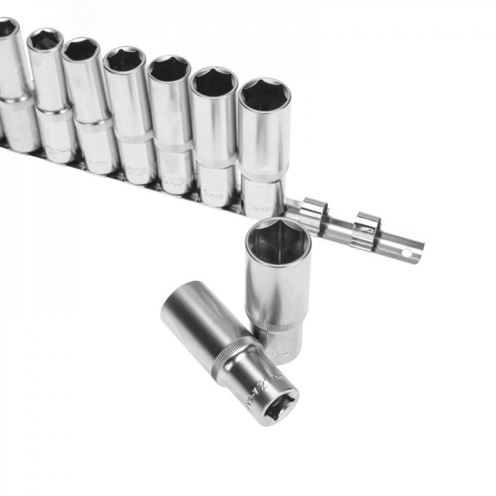 Набор удлиненных торцевых головок 1/2, шестигранные, CrV, 10 шт., 10-22мм 12-8308
